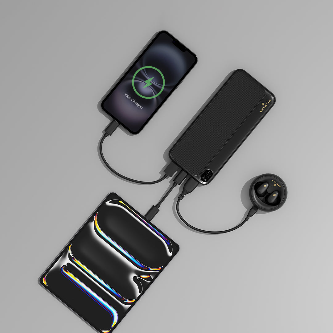 Portable and reliable solution for charging on the go, Smartix Premium 10000mAh power bank offers ample capacity to keep your devices powered.