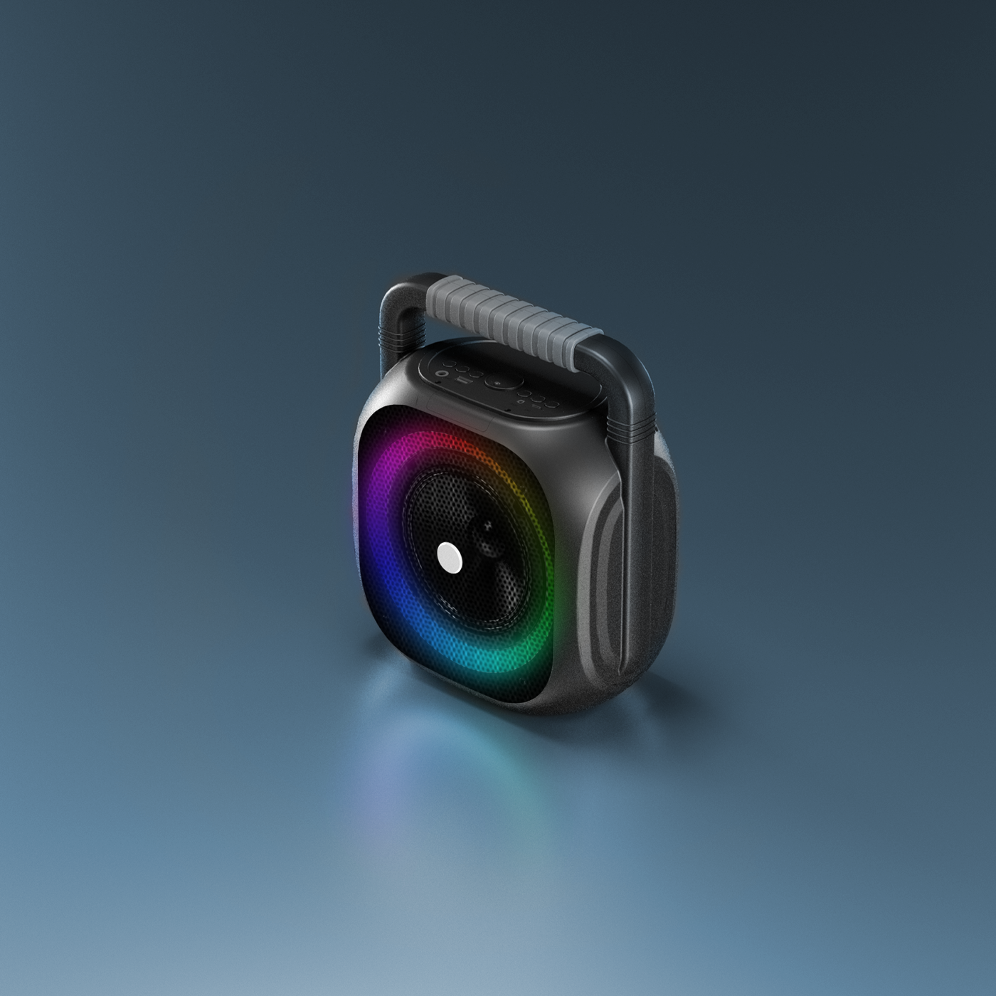 Portable party speaker with powerful bass and immersive sound, perfect for energetic and vibrant party scene