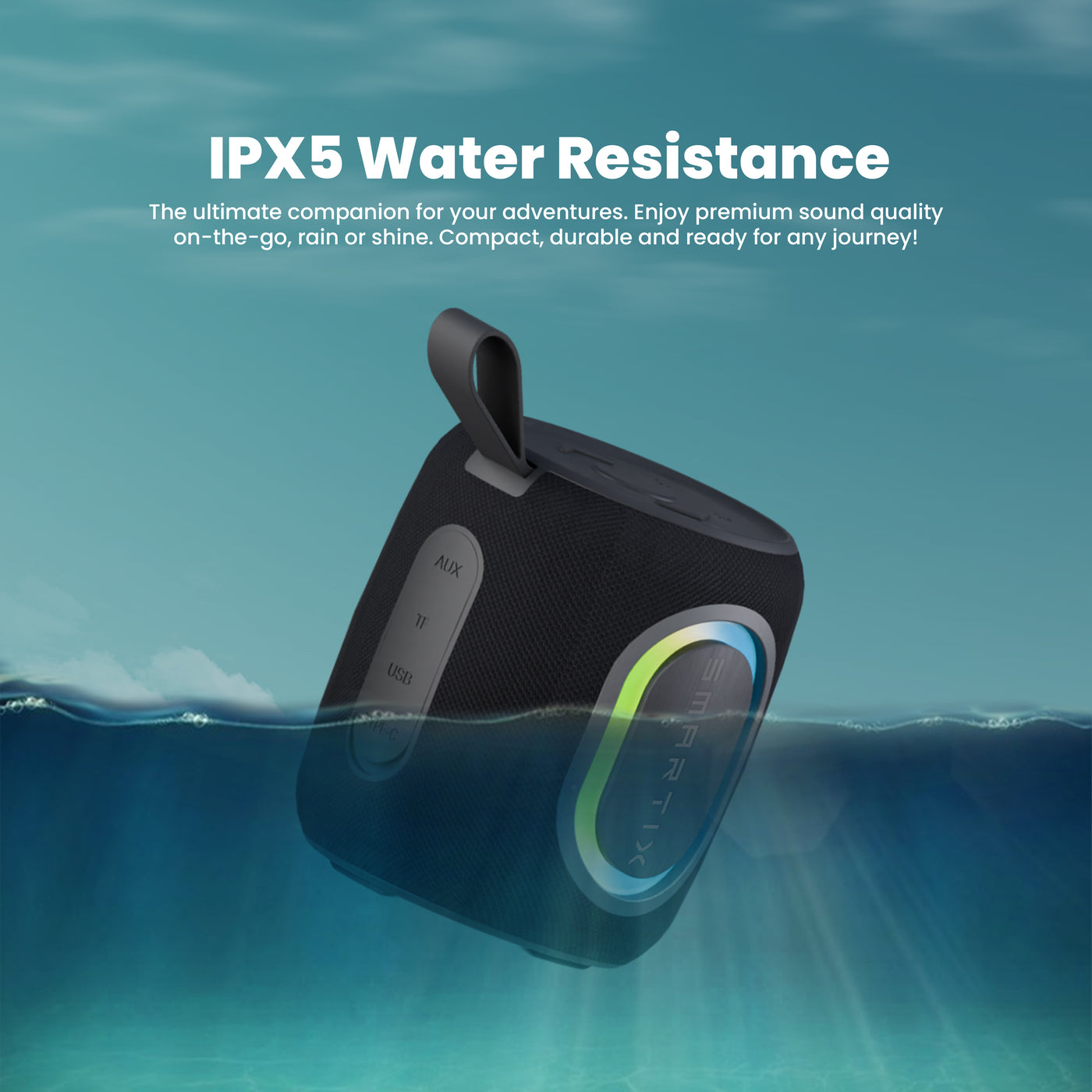 The ultimate companion for your adventures. Enjoy premium sound quality on-the-go, rain or shine. Compact, durable and ready for any journey!