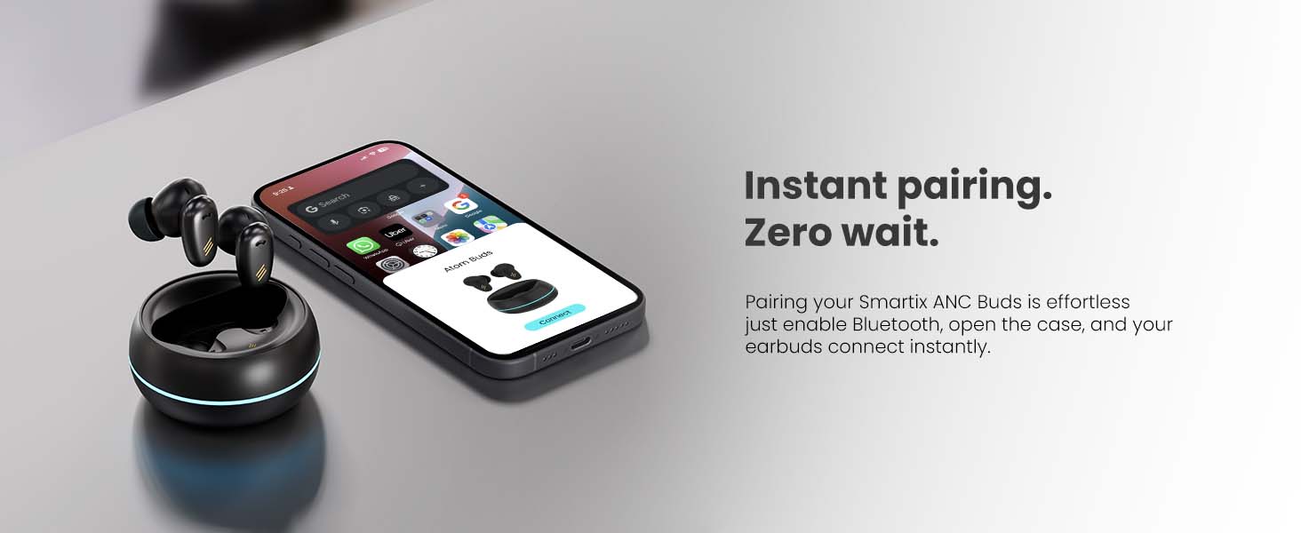 True sound is best experienced when ambient sound is silenced through Active Noise cancellation. Proprietary Active Noise Cancellation (ANC) developed by Smartix Atom Earbuds lets you seamlessly switch between absolute noise canceling and adjustable ambient sound. Boost your mood and senses by eliminating ambient sound and immerse yourself in the clarity and details of music and calls without distraction, giving you an experience like no other. With transparency mode, you can also focus on external sounds and stay connected with the world around you.