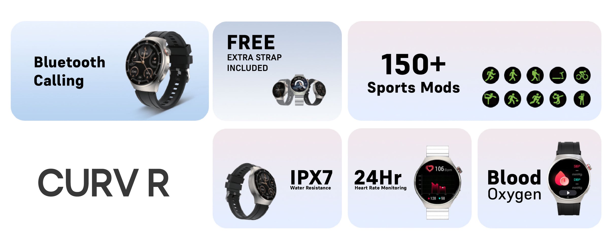 Effortlessly makes calls with the Bluetooth Calling feature on the sleek CurvR smartwatch.